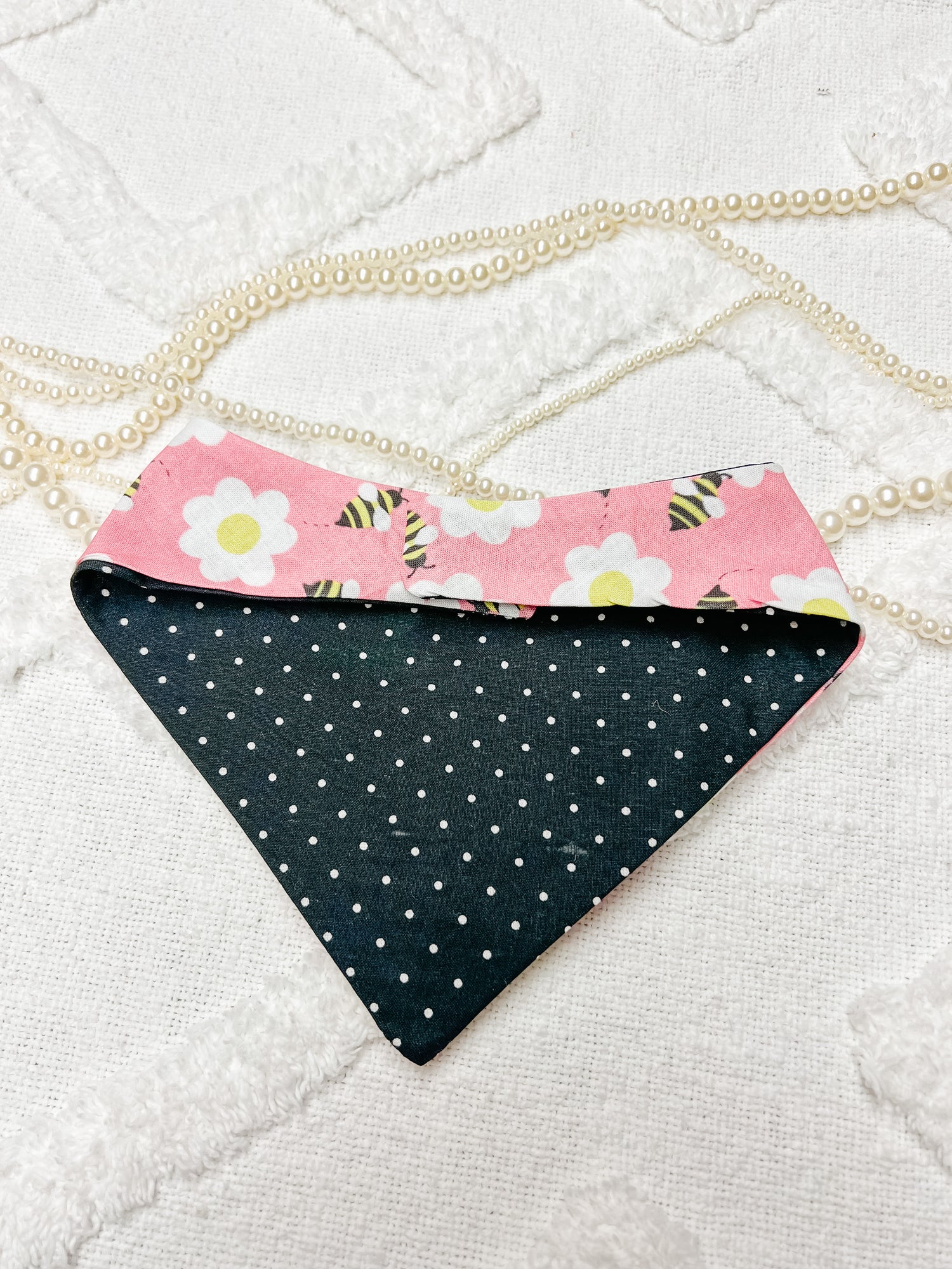 Cotton, curved neck pet bandana with one set of metal snaps. Some styles are reversible so your pet can have 2 outfits in 1 bandana.