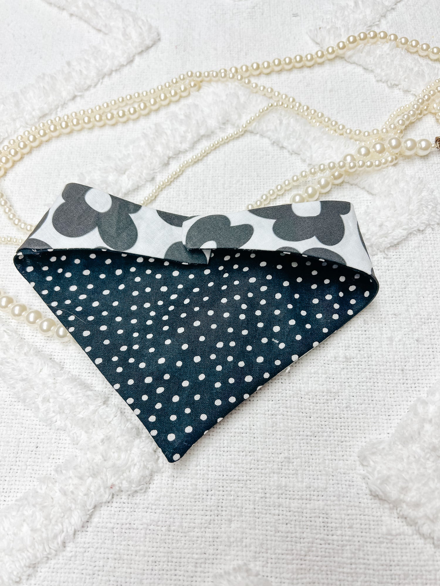 Cotton, curved neck pet bandana with one set of metal snaps. Some styles are reversible so your pet can have 2 outfits in 1 bandana.