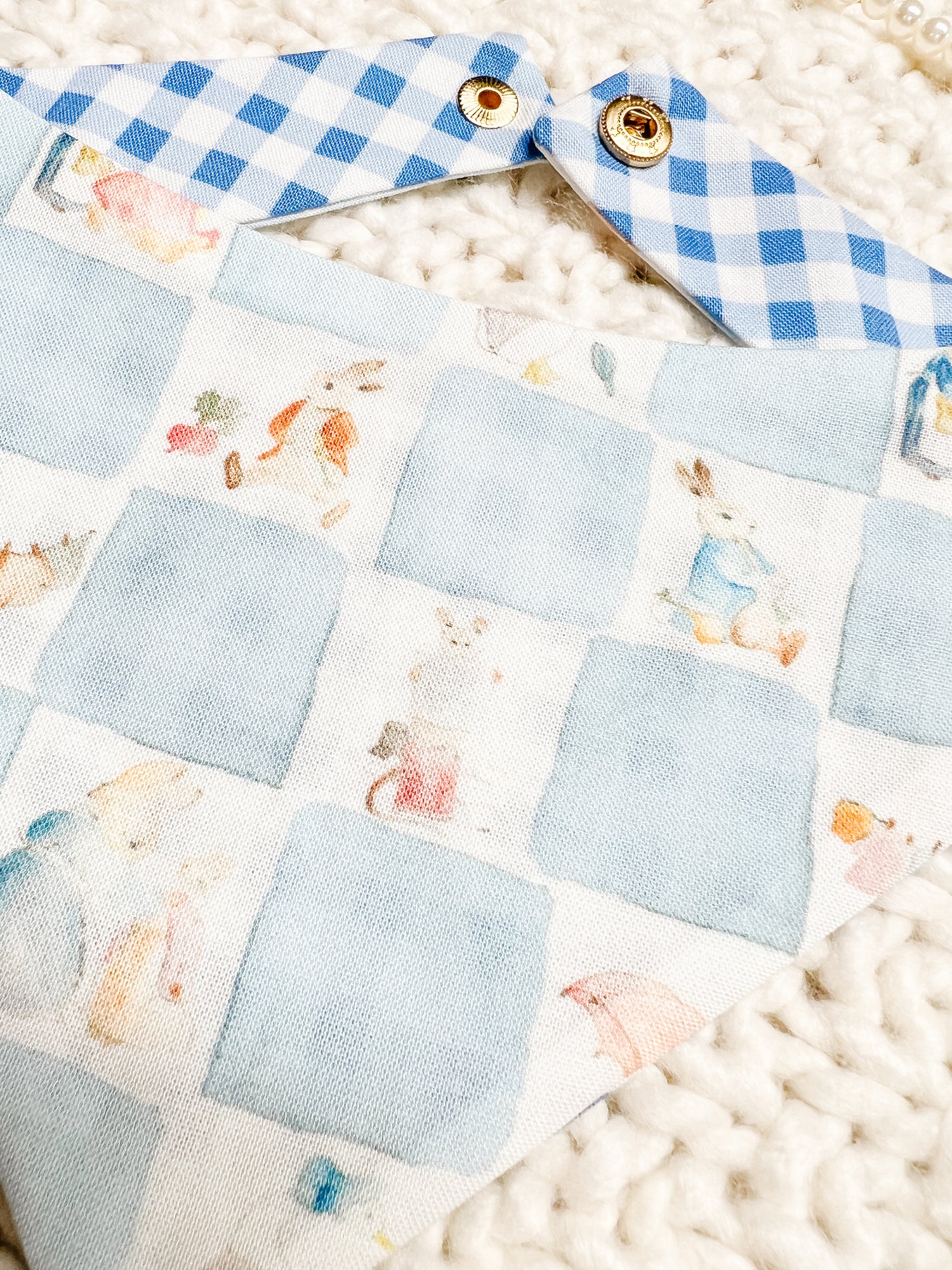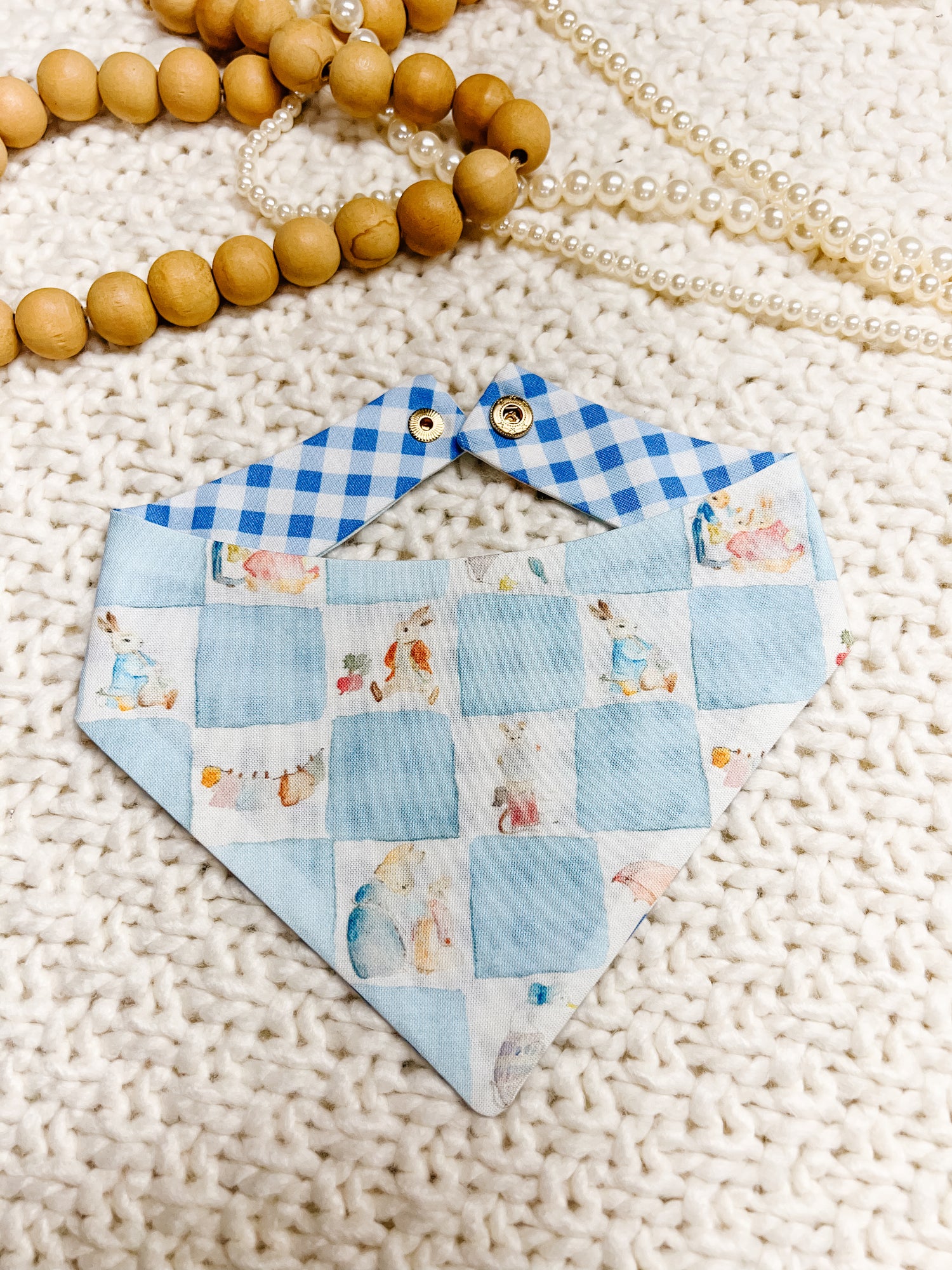 Cotton, curved neck pet bandana with one set of metal snaps. Some styles are reversible so your pet can have 2 outfits in 1 bandana.