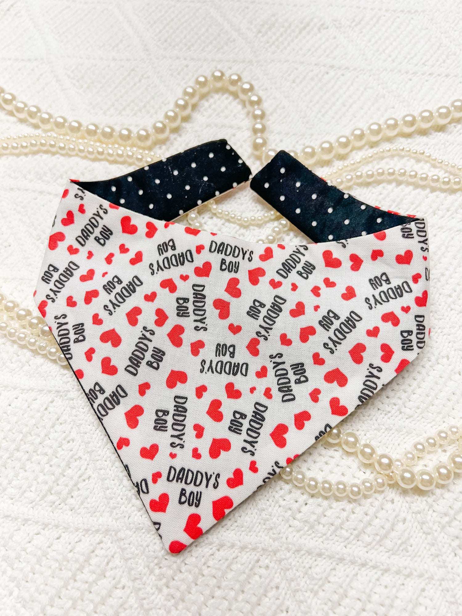 Cotton, curved neck pet bandana with one set of metal snaps. Some styles are reversible so your pet can have 2 outfits in 1 bandana.
