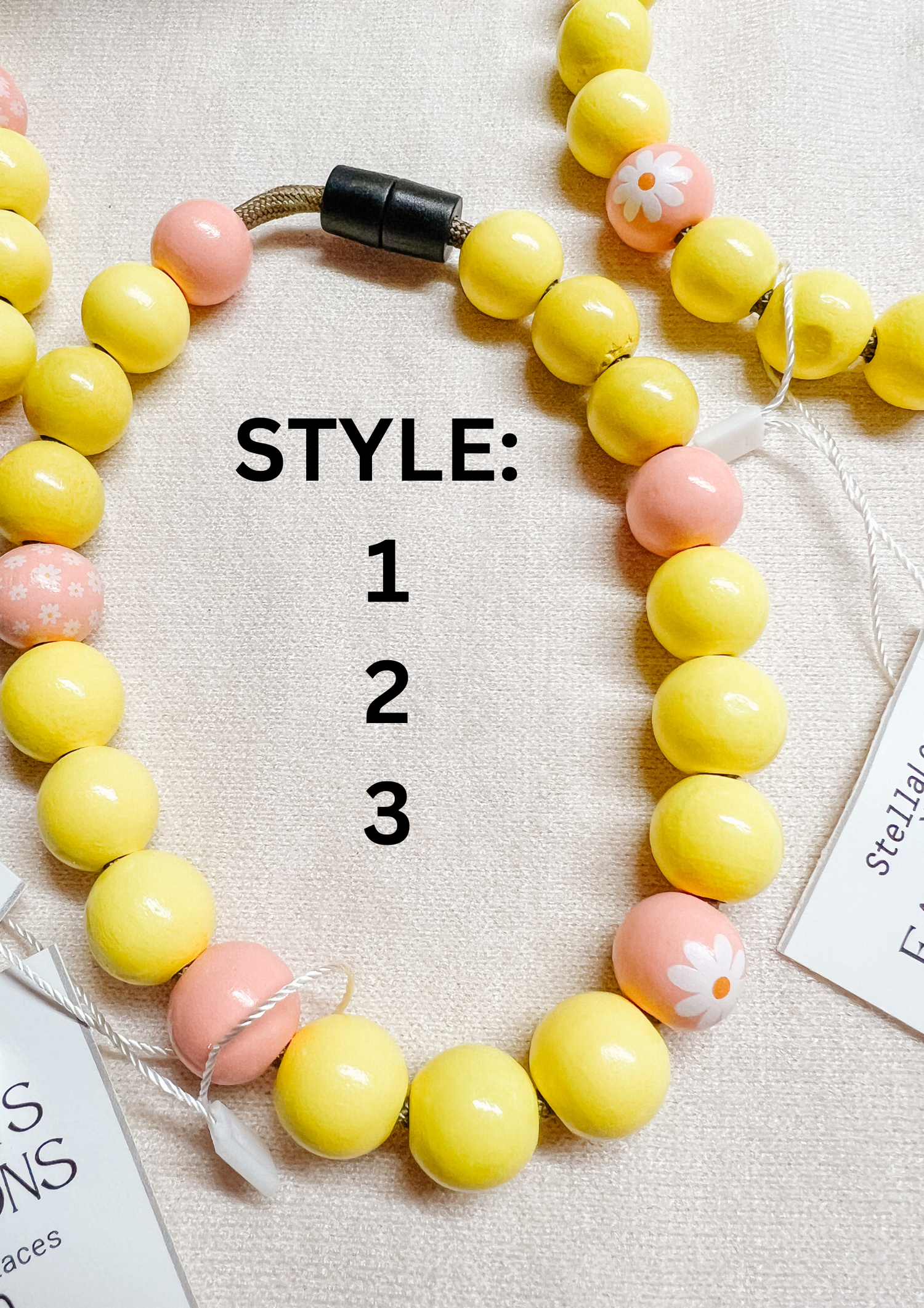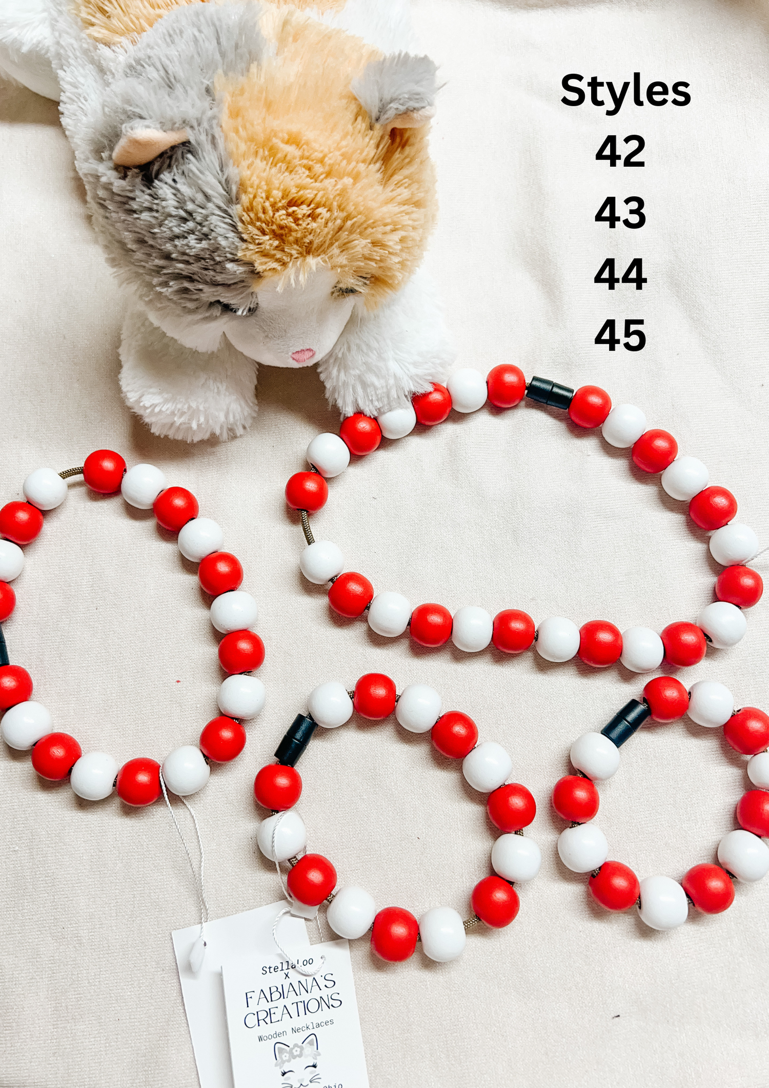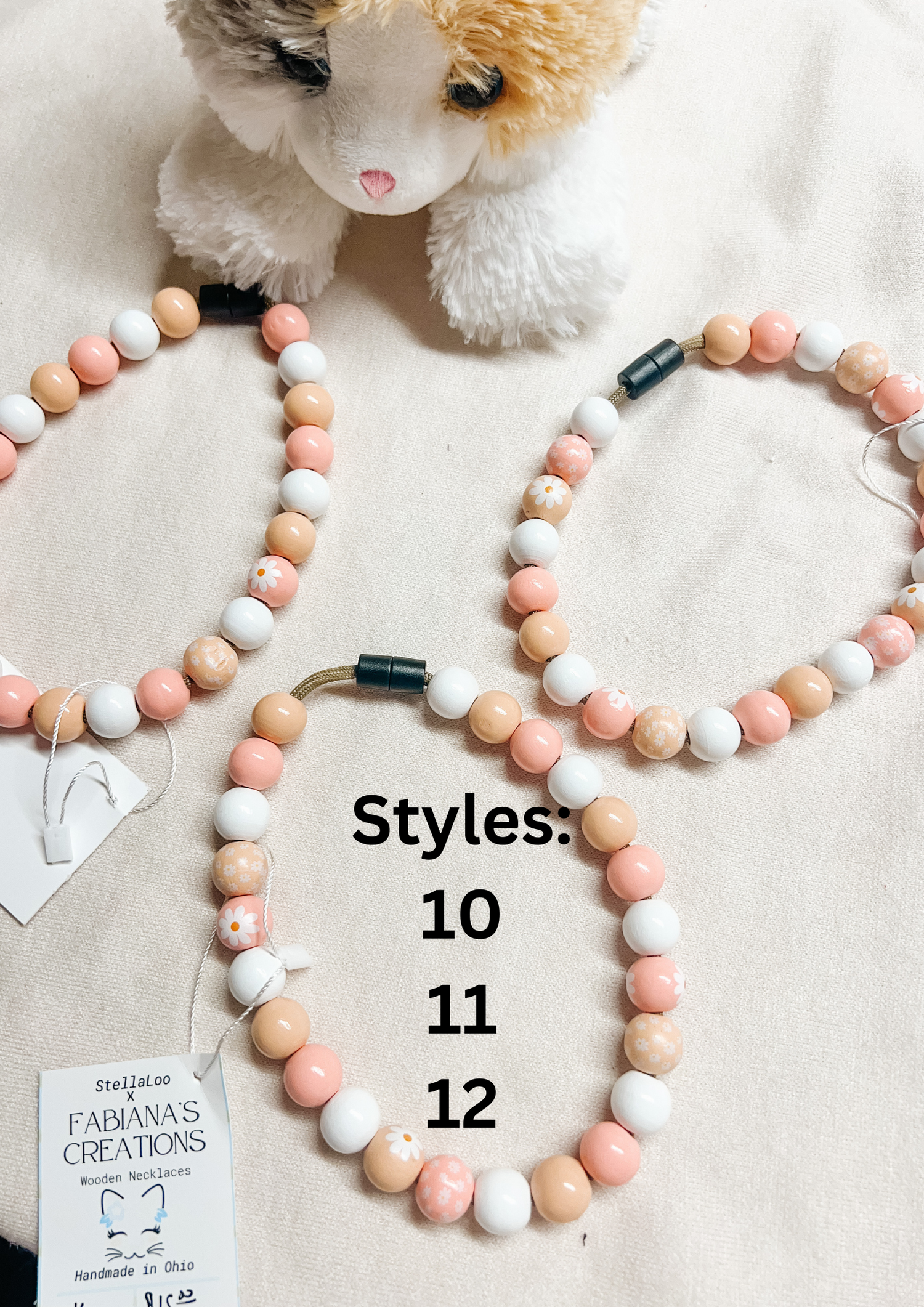 Wooden bead necklaces. Safety snap, for all day use.