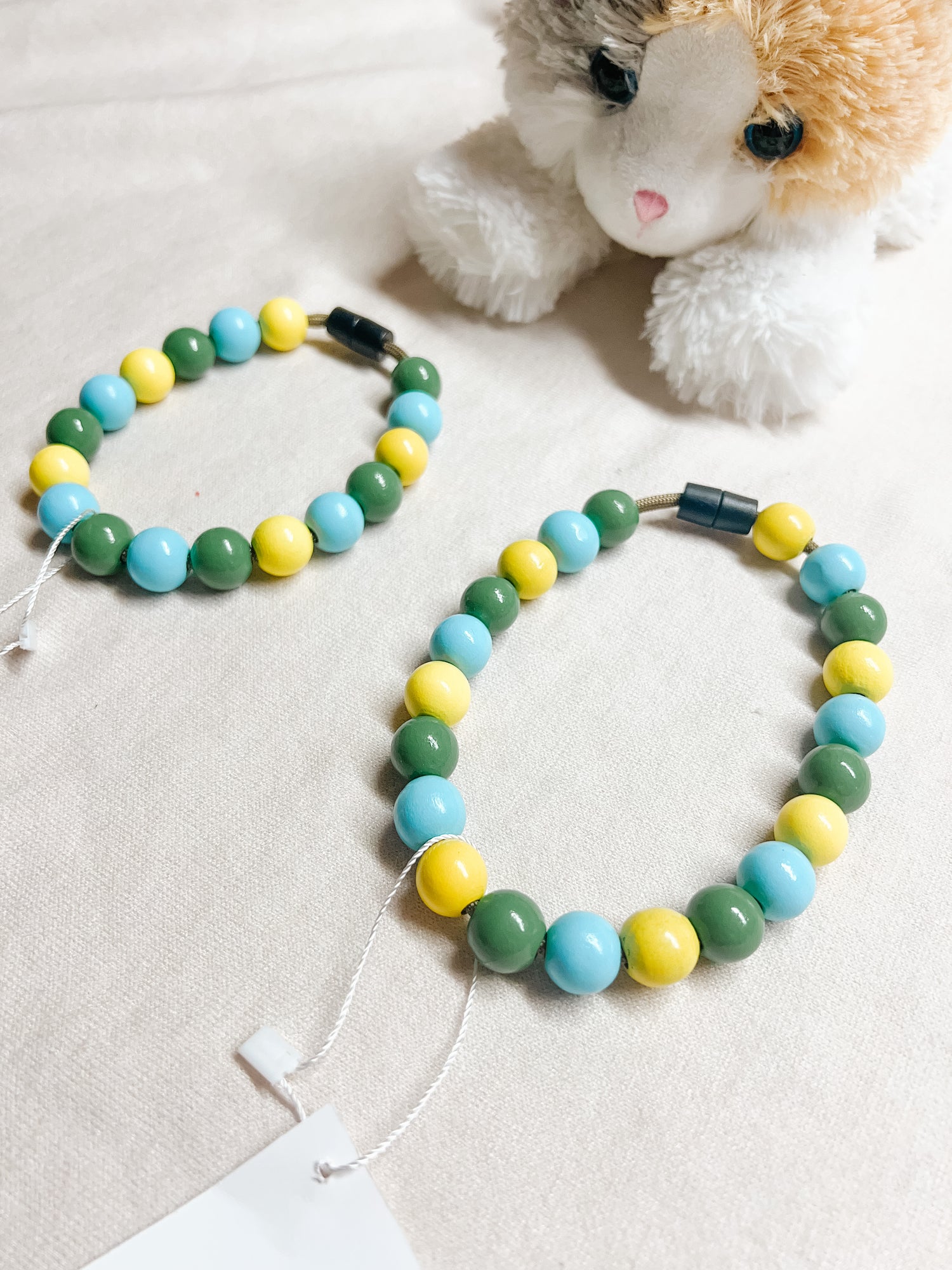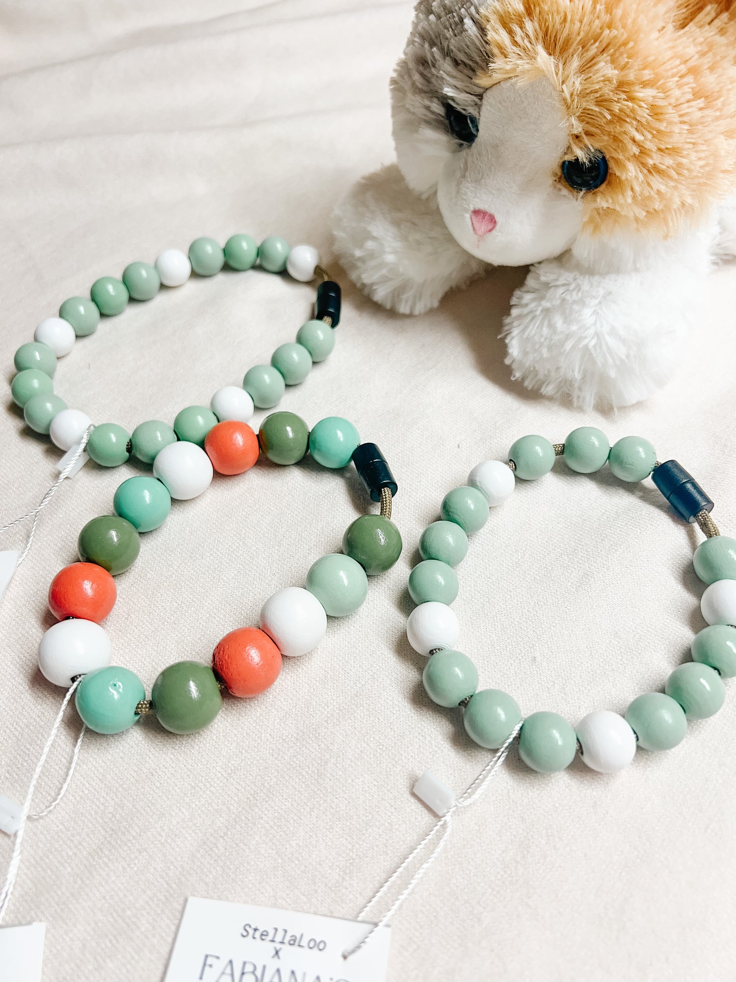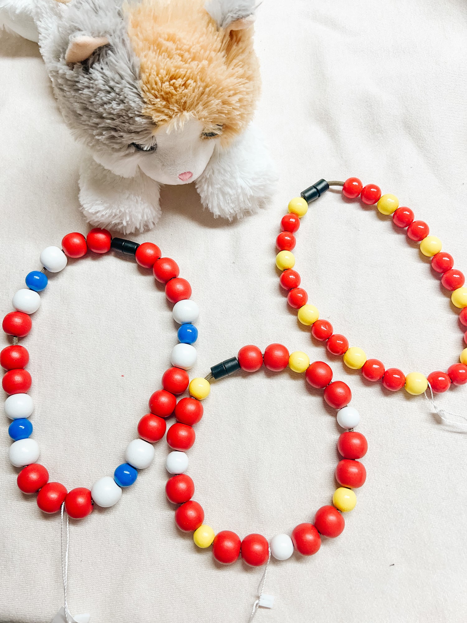 Wooden bead necklaces. Safety snap, for all day use.