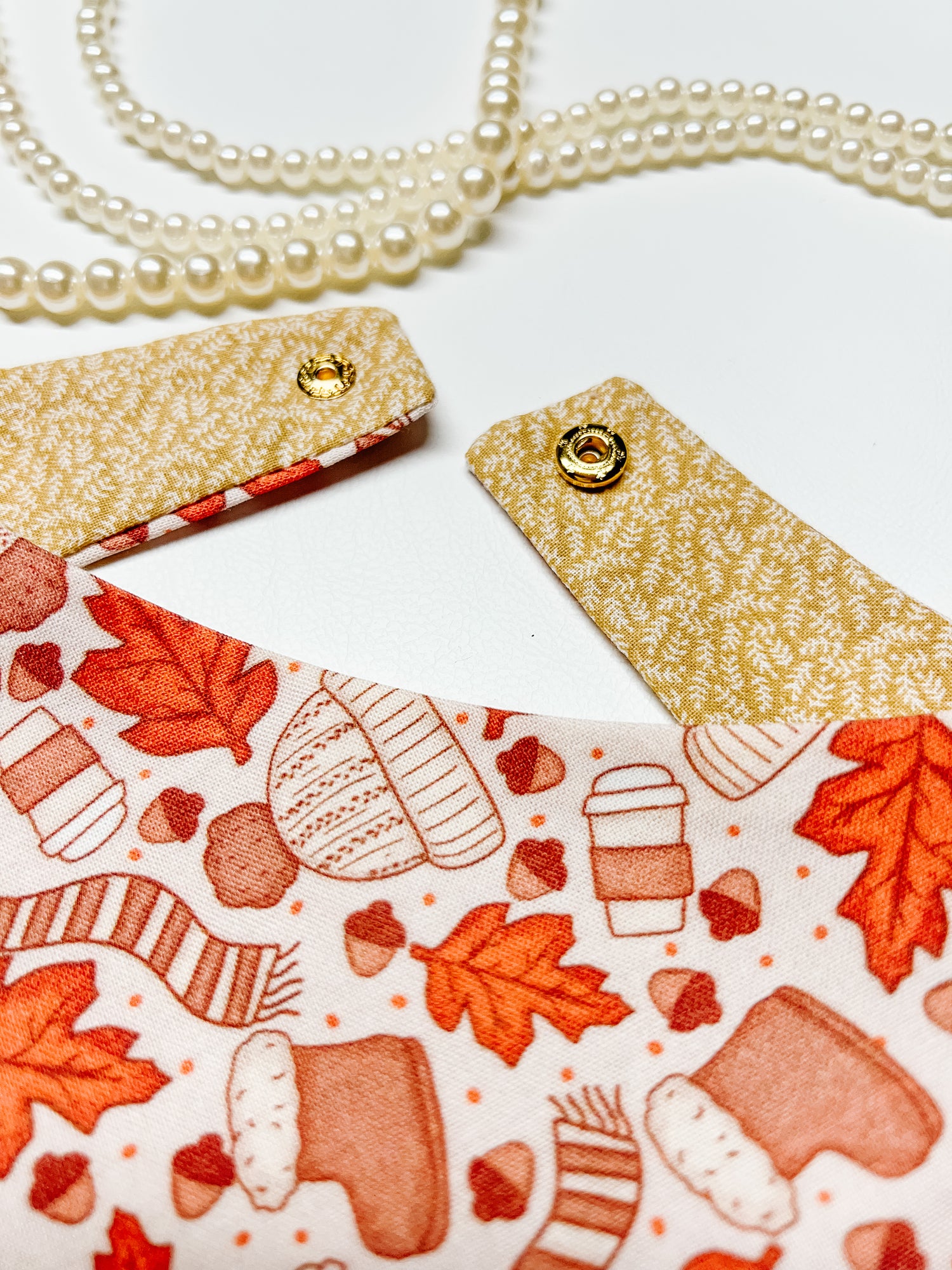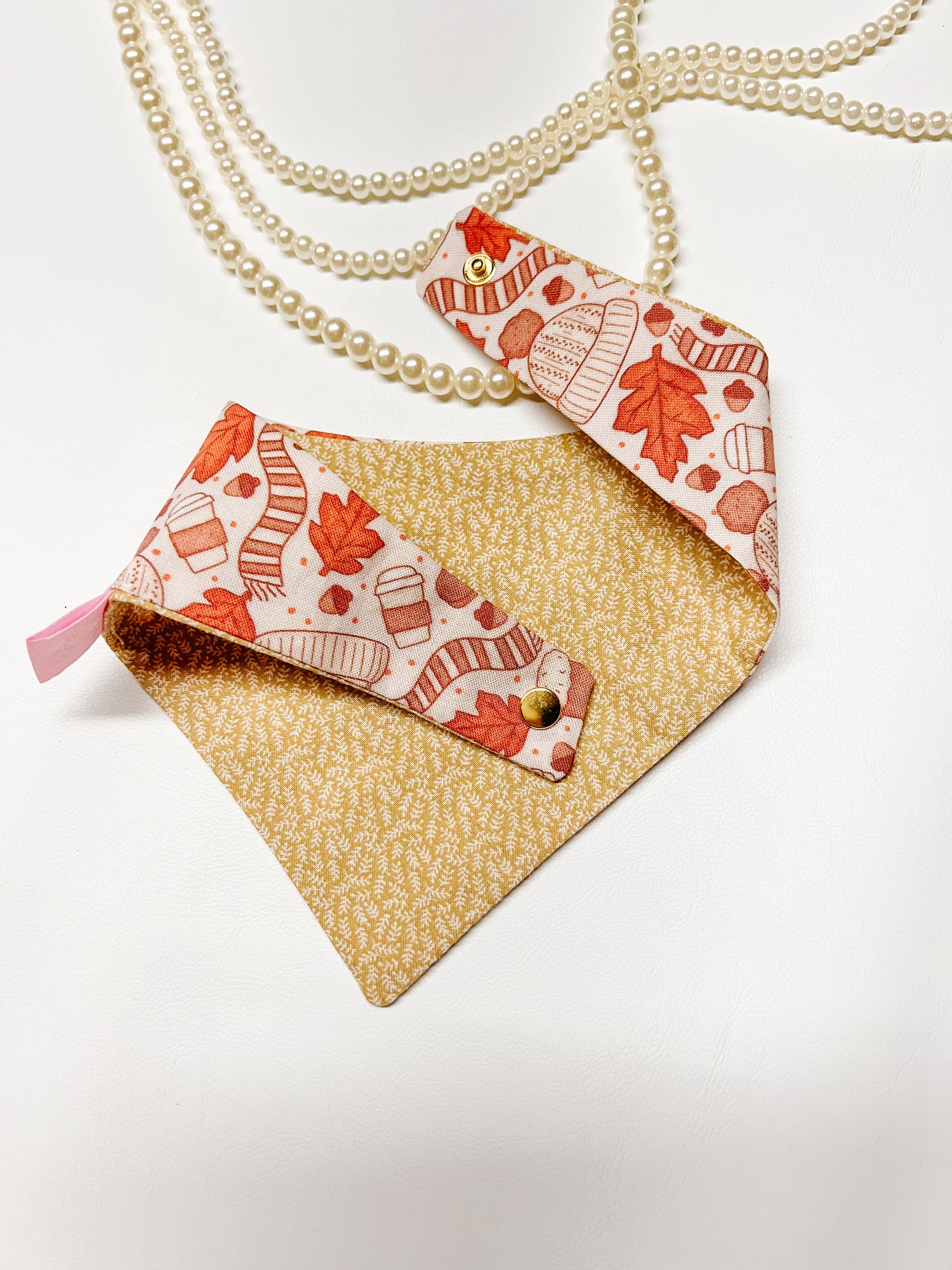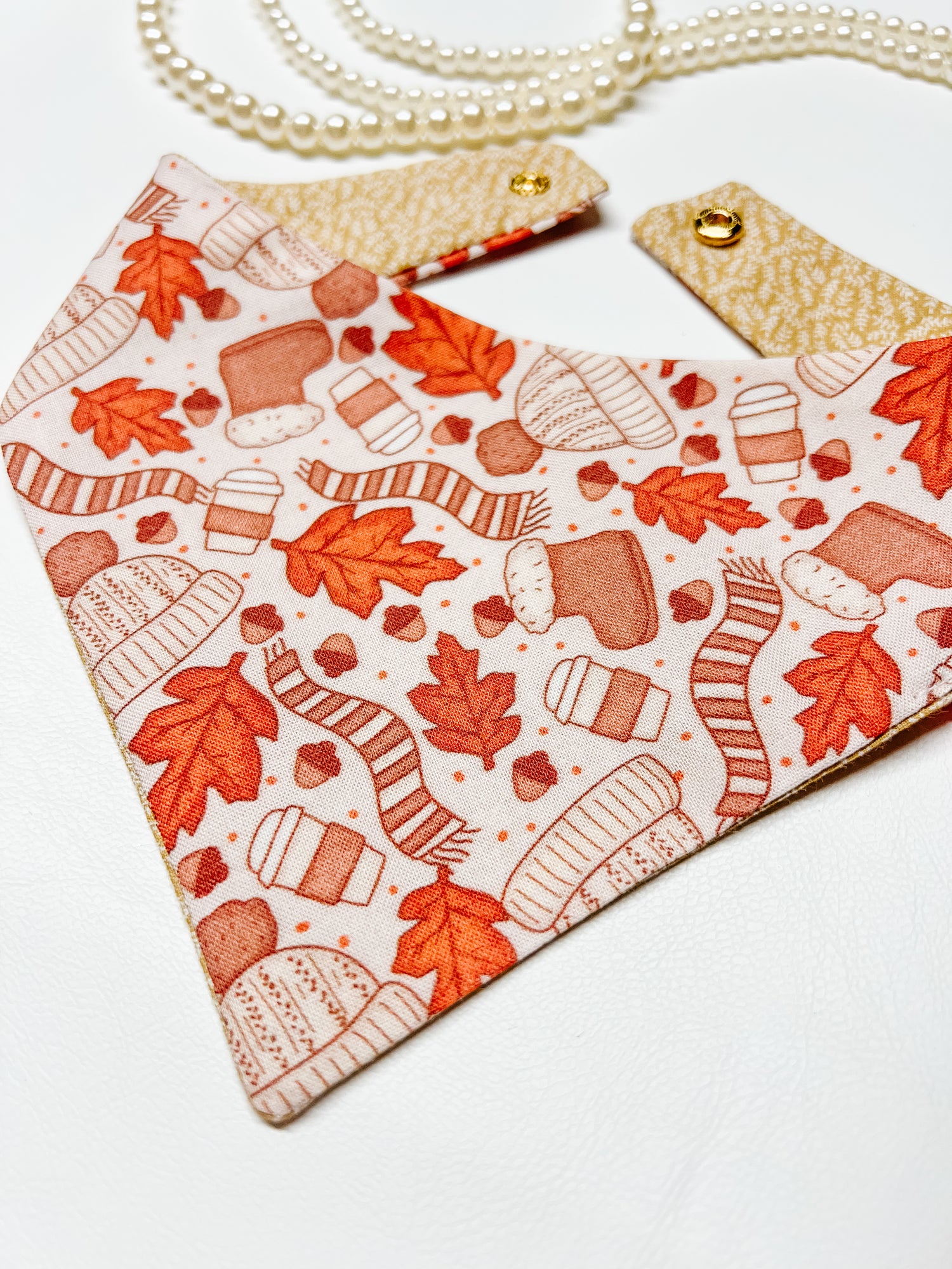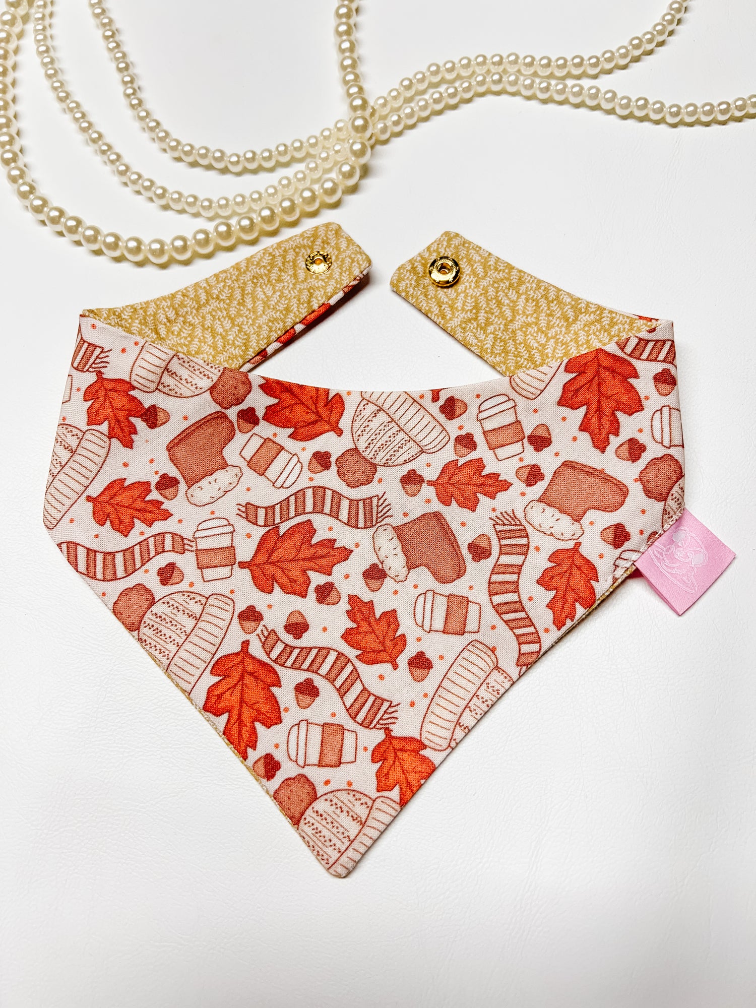 Cotton, curved neck pet bandana with one set of metal snaps. Some styles are reversible so your pet can have 2 outfits in 1 bandana.