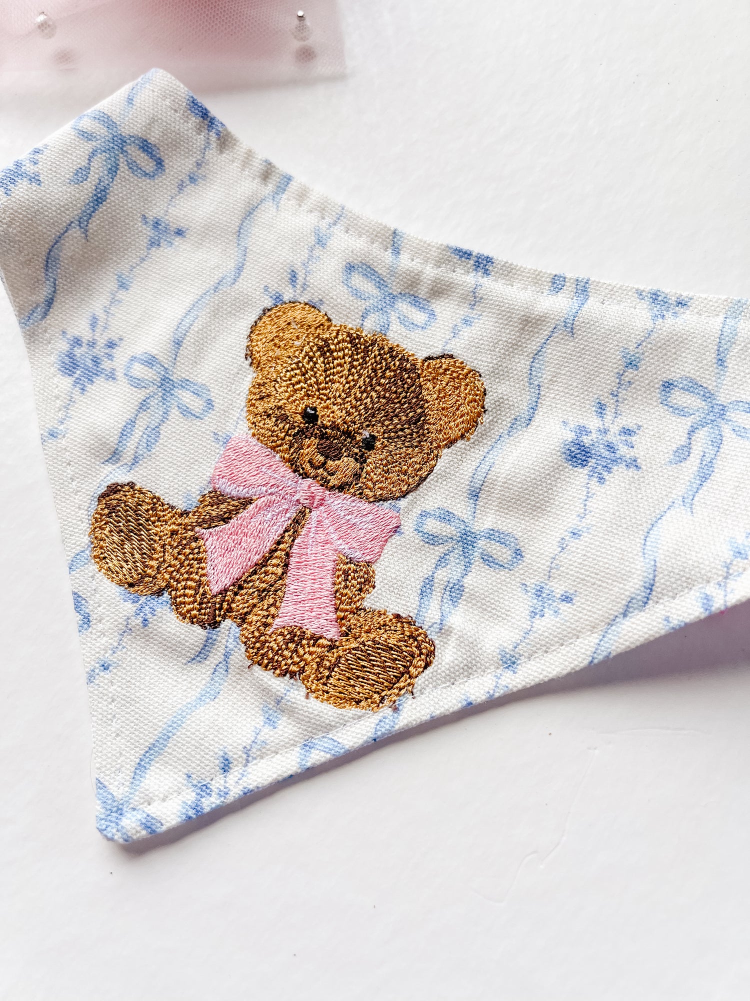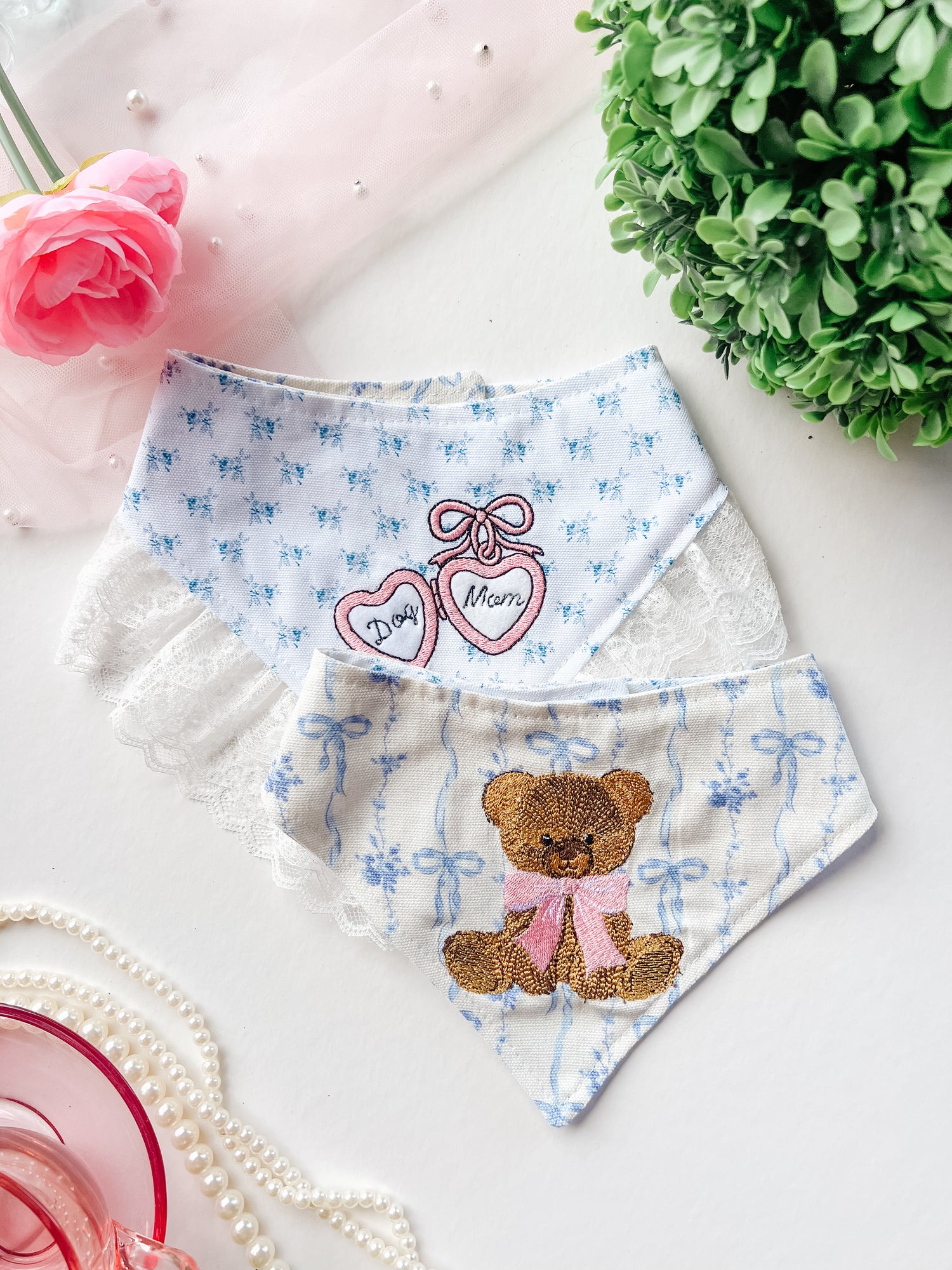 Cotton, curved neck pet bandana with one set of metal snaps. Some styles are reversible so your pet can have 2 outfits in 1 bandana.
