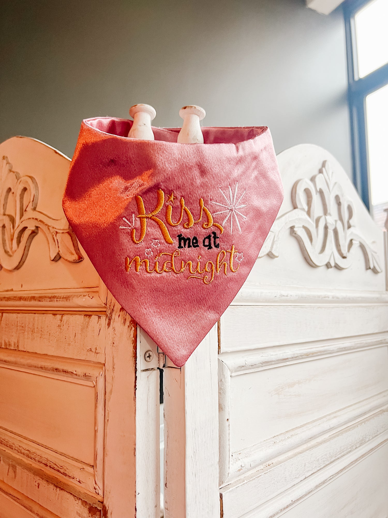 Cotton, curved neck pet bandana with one set of metal snaps. Some styles are reversible so your pet can have 2 outfits in 1 bandana.