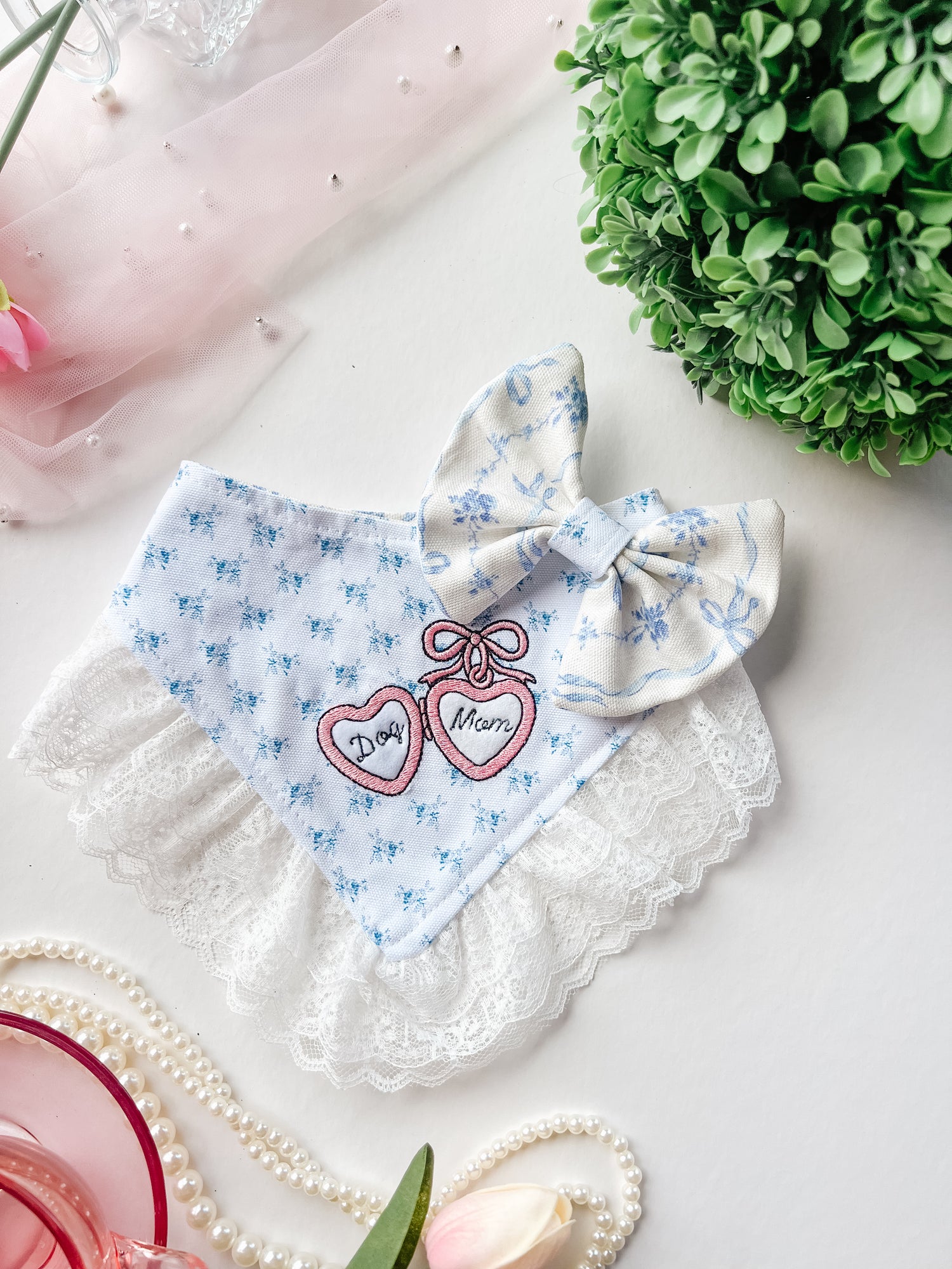 Cotton, curved neck pet bandana with one set of metal snaps. Some styles are reversible so your pet can have 2 outfits in 1 bandana.