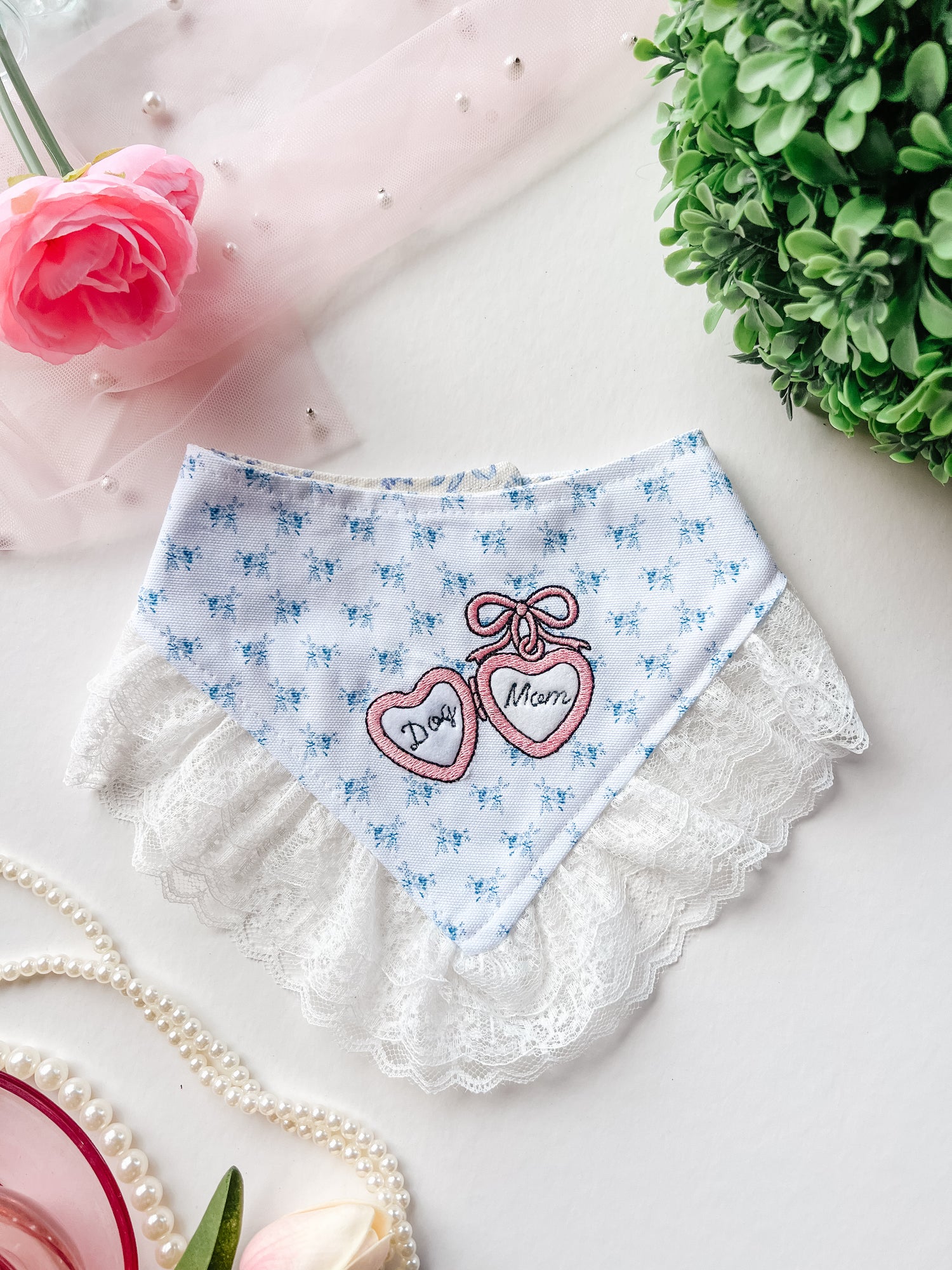 Denim with embroidery. Leave a note if you want different colors for the heart or custom name