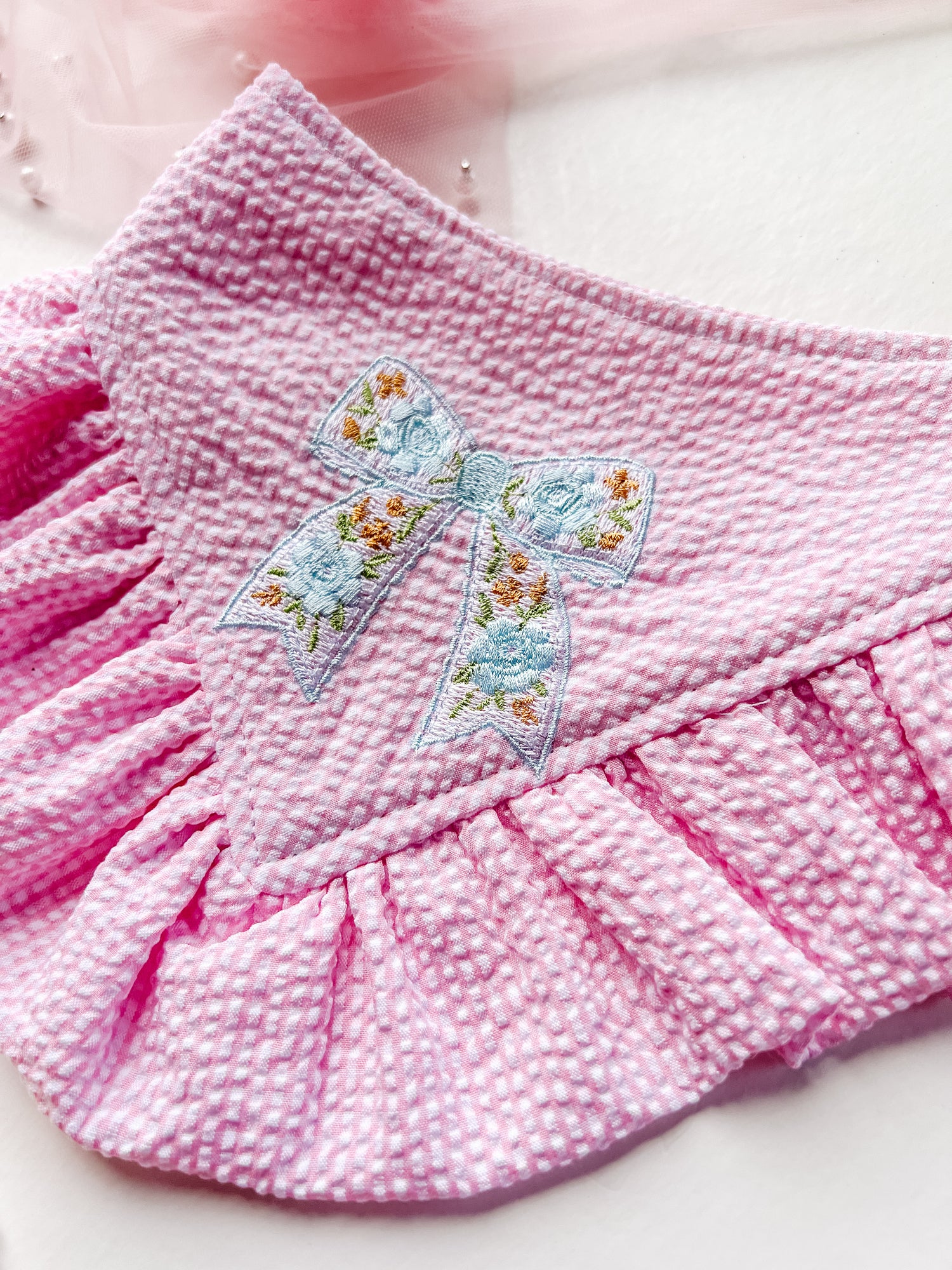The matching Hair Bow or Bow Tie is attached with a standard metal silver alligator clip. HAIR BOW OR BOW TIE SOLD SEPARATELY