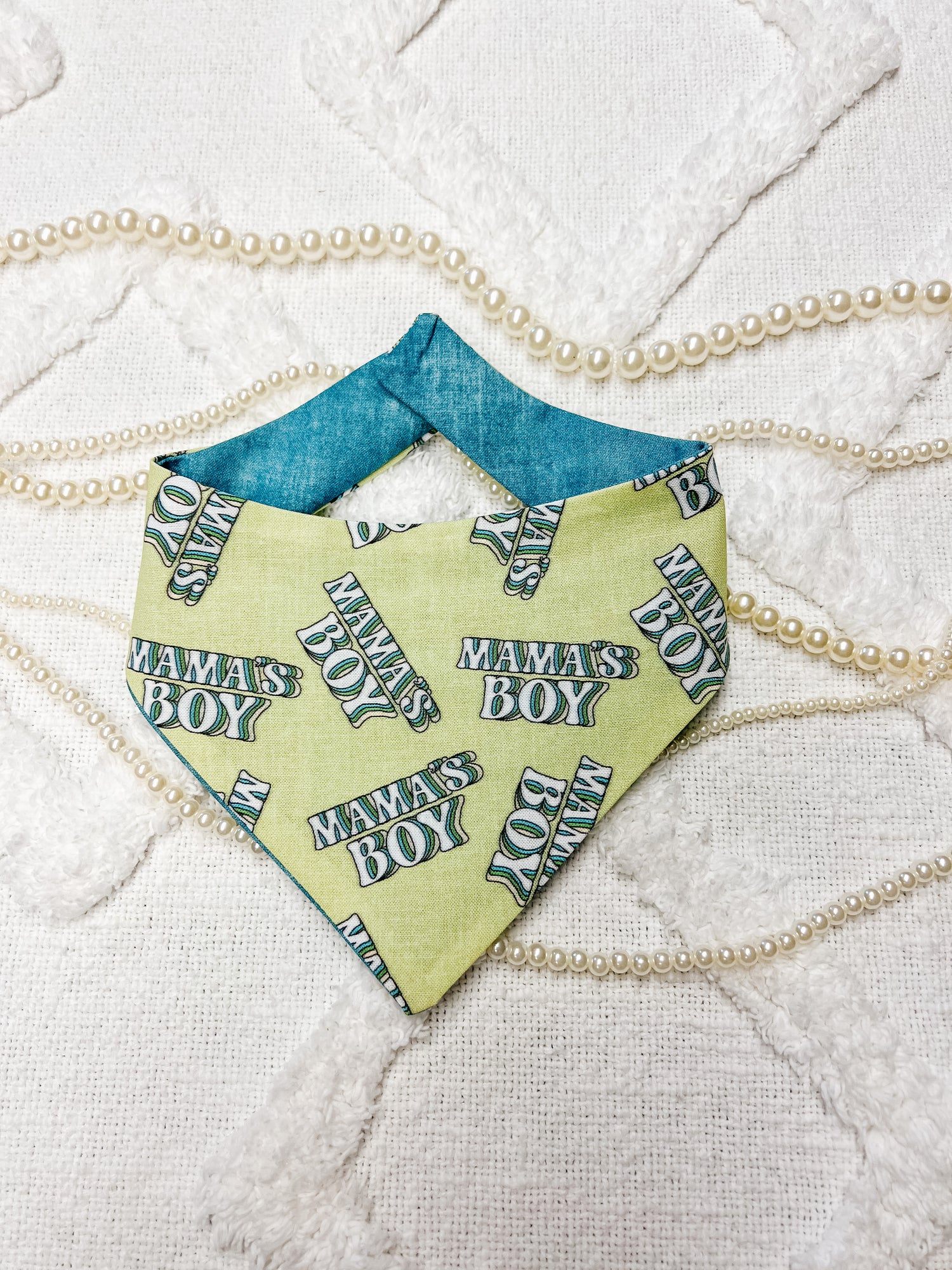 Cotton, curved neck pet bandana with one set of metal snaps. Some styles are reversible so your pet can have 2 outfits in 1 bandana.