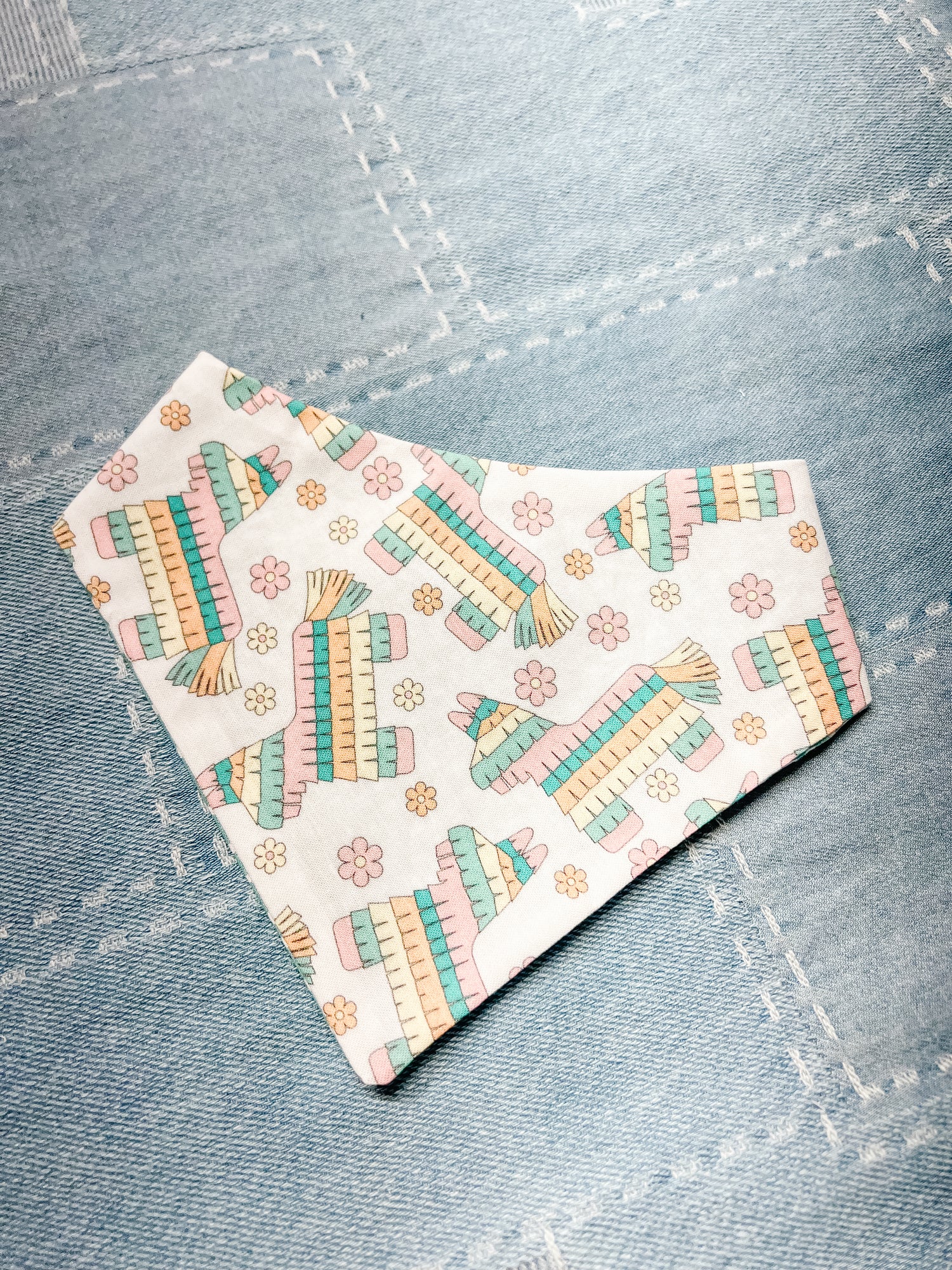 Cotton, curved neck pet bandana with one set of metal snaps. Some styles are reversible so your pet can have 2 outfits in 1 bandana.