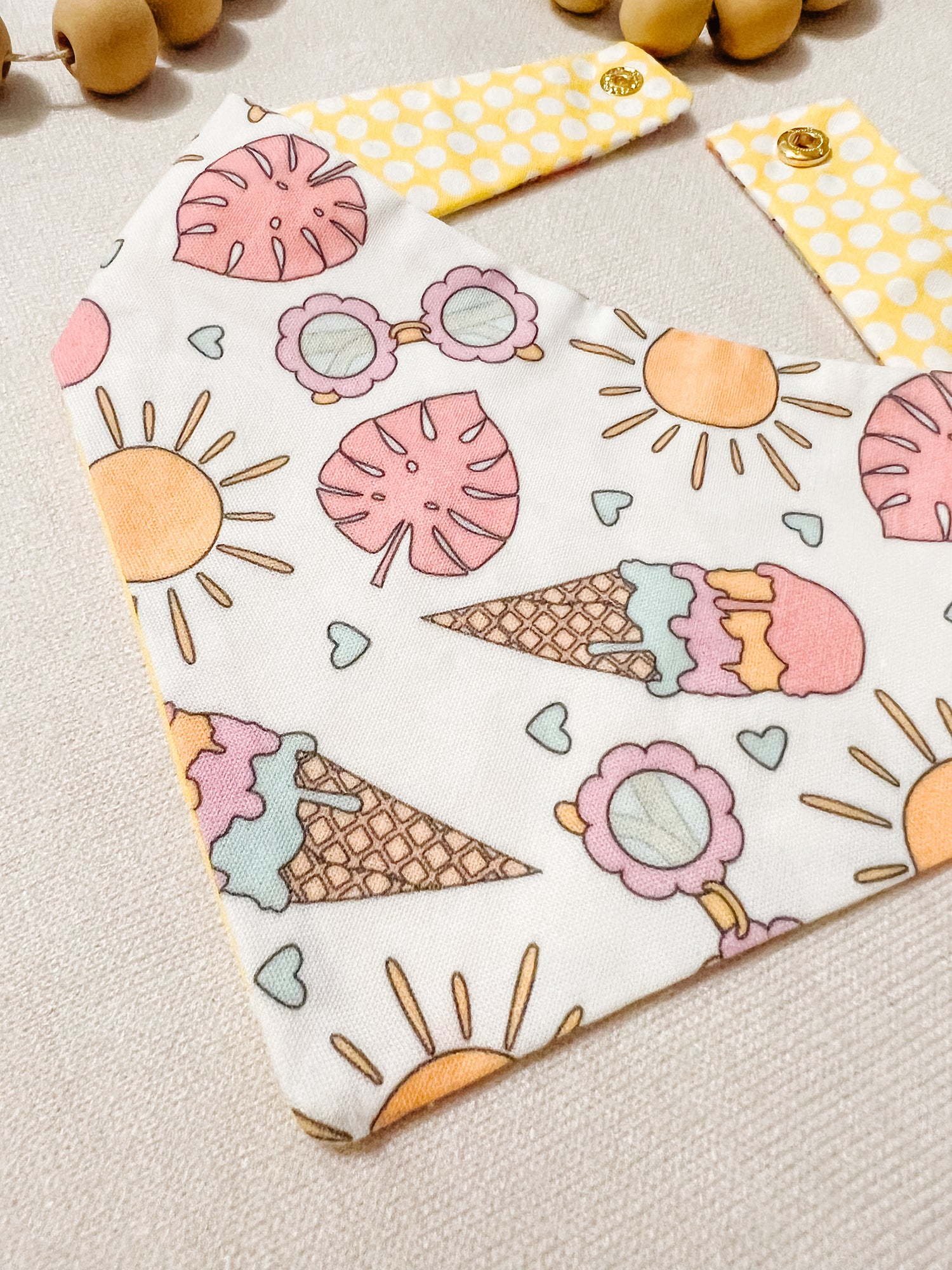 One set of snaps will be placed at the ends of the bandana unless otherwise stated. ADDITIONAL SNAPS MAY BE PURCHASED SEPARATELY