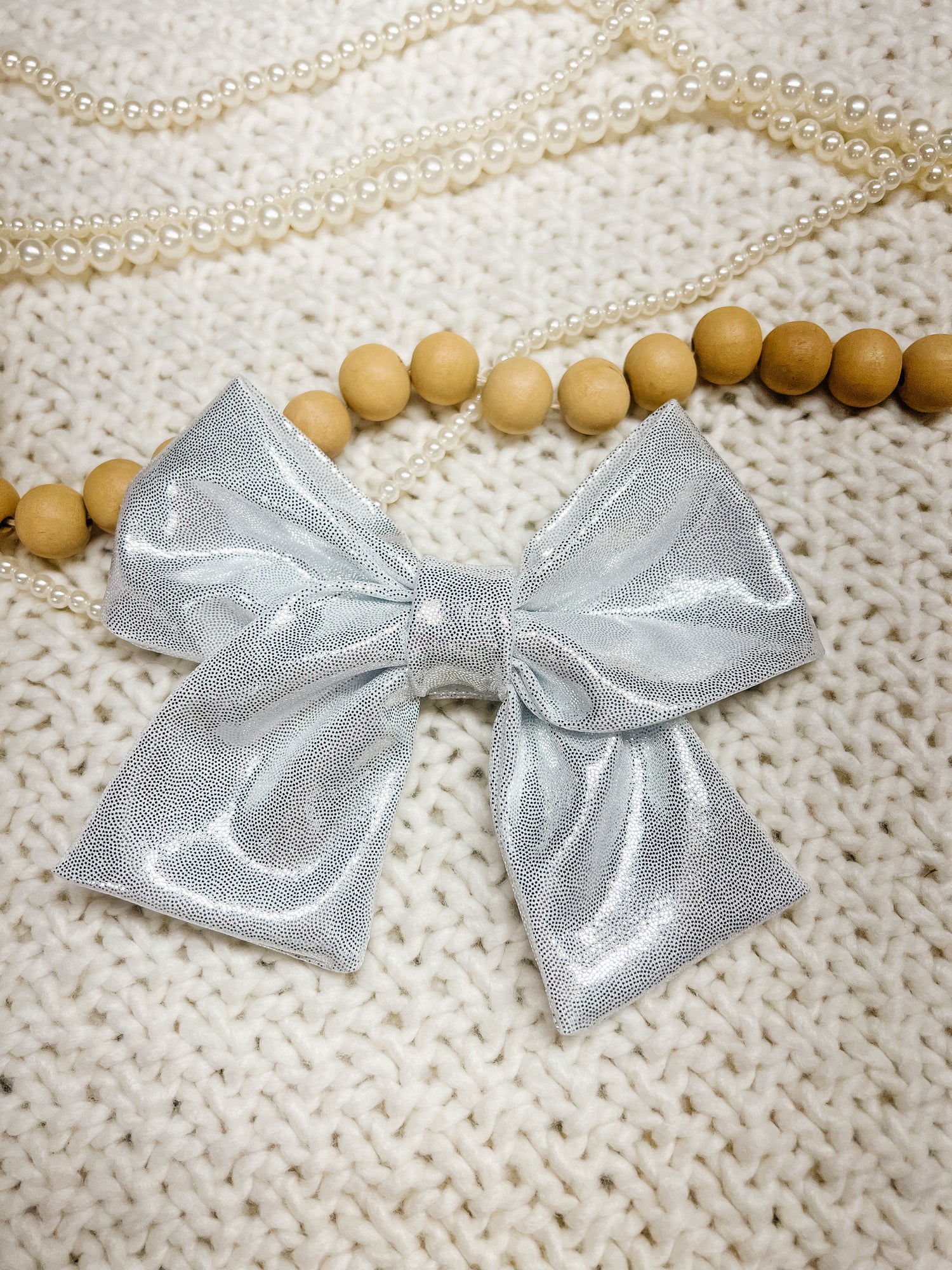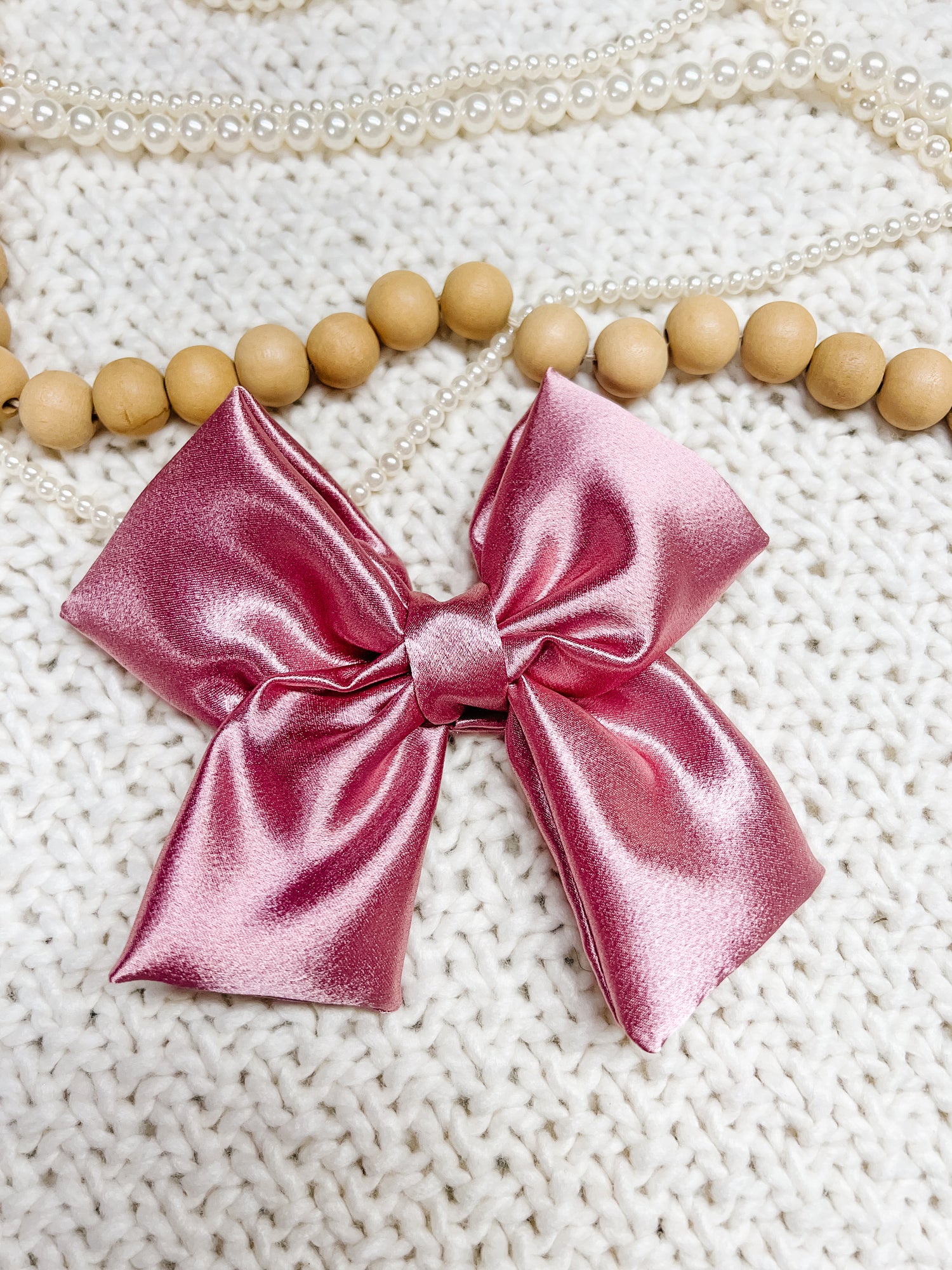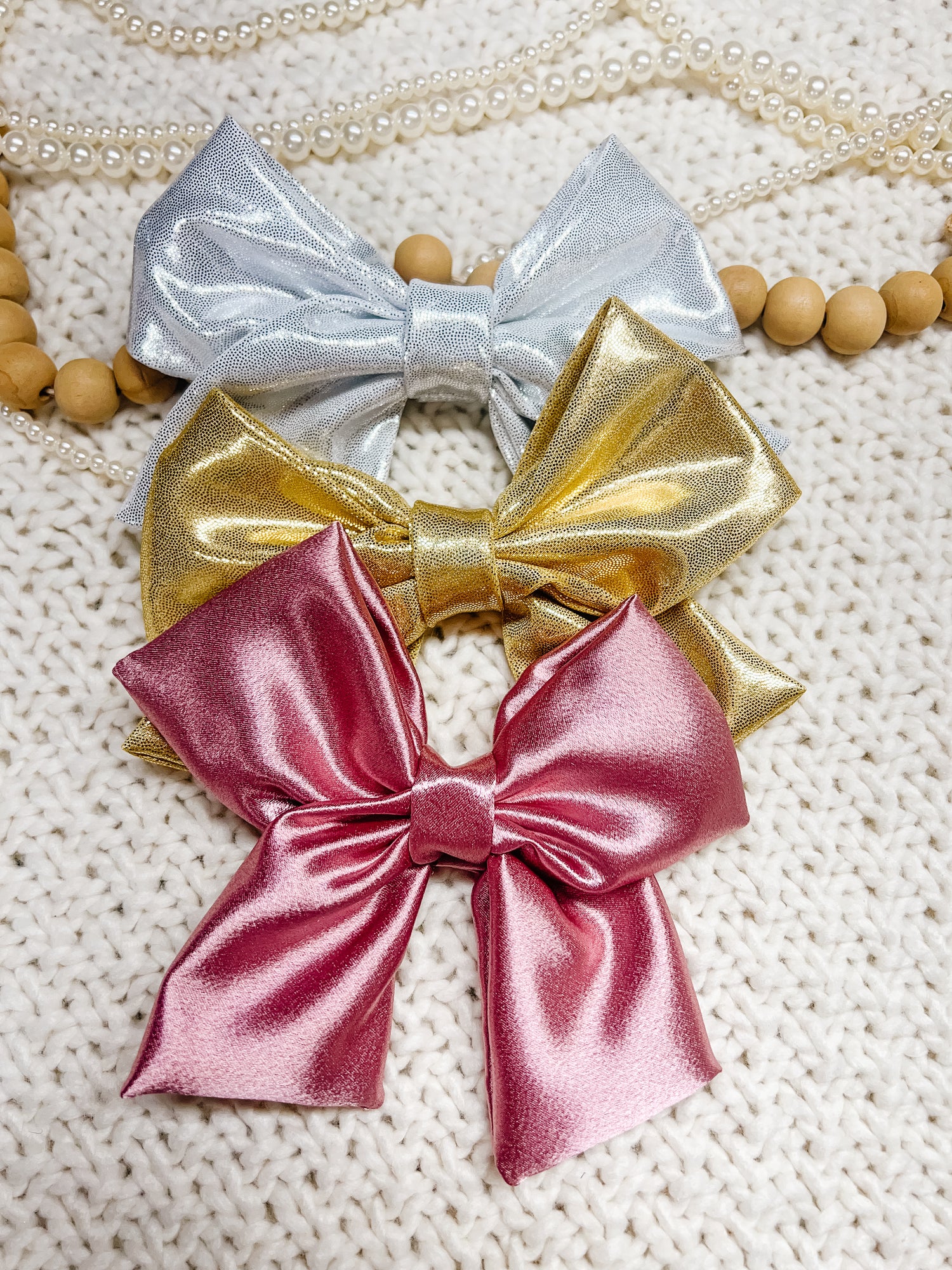 The matching Hair Bow or Bow Tie is attached with a standard metal silver alligator clip. HAIR BOW OR BOW TIE SOLD SEPARATELY