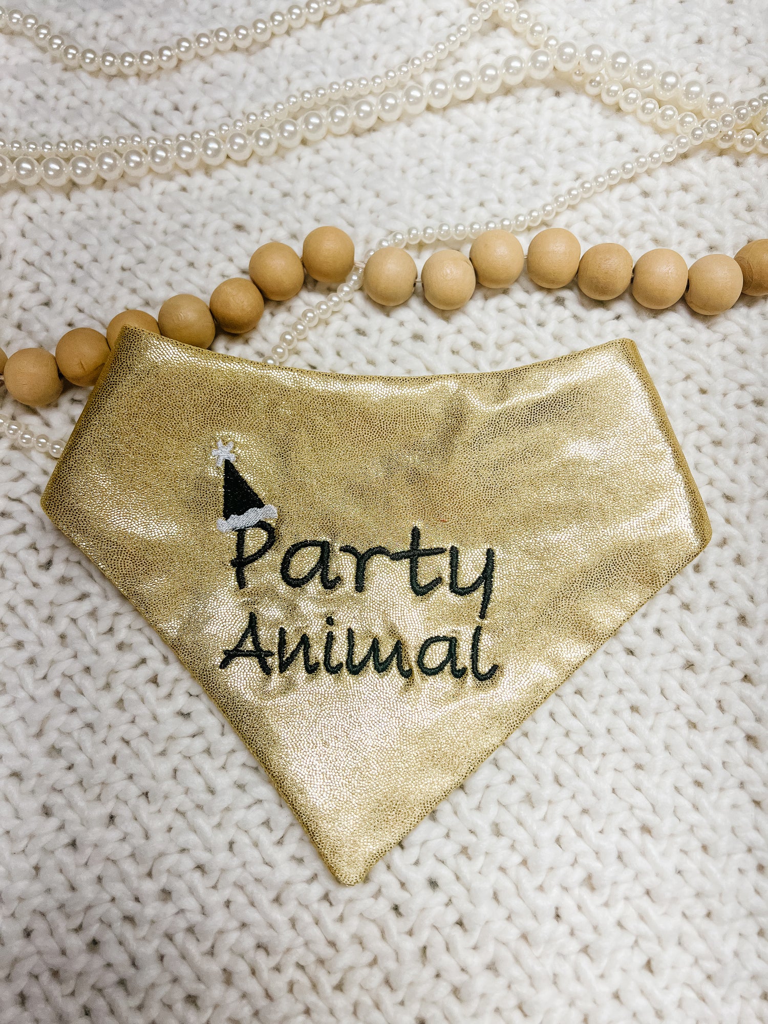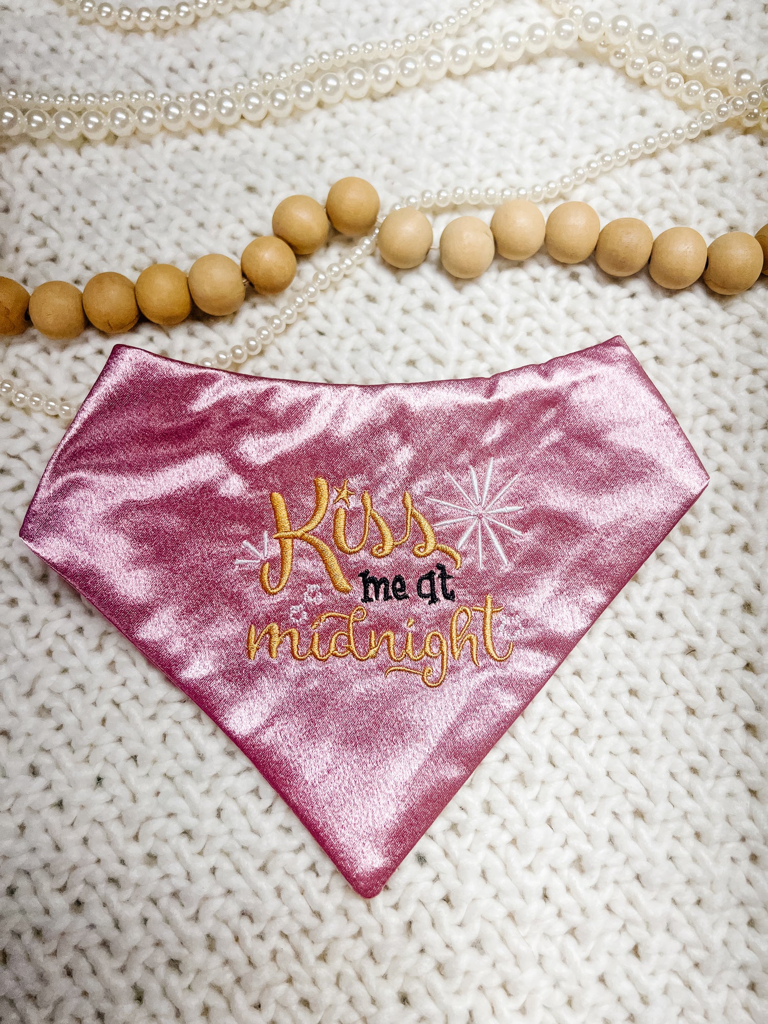 Embroidery. Two sets of metal snaps. Some styles are reversible so your pet can have 2 outfits in 1 bandana.