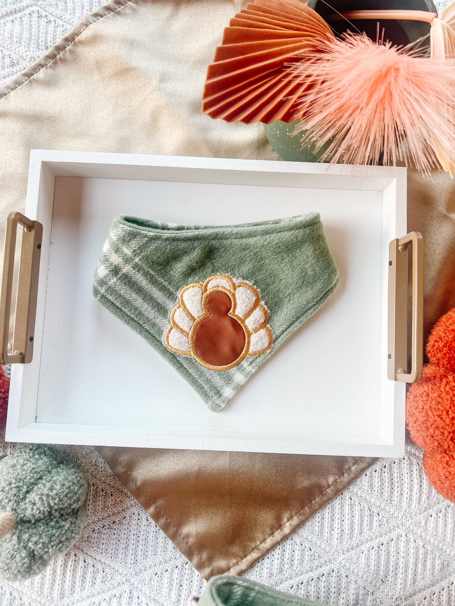 All measurements are approximate and will vary as each bandana is cut by hand. If your pet is in between sizes, we recommend sizing up and leave us a note at checkout.